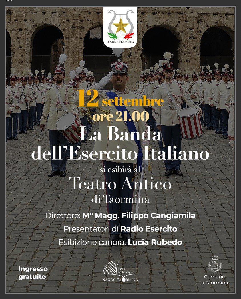 Venerdì 12 alle ore 21.00 Taormina ospiterà la Banda Musicale dell’Esercito Italiano, diretta dal M° Magg. Filippo Cangiamila.
