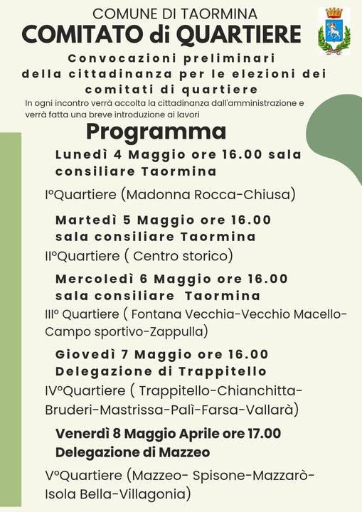 Convocazioni preliminari della cittadinanza per le elezioni dei comitati di quartiere